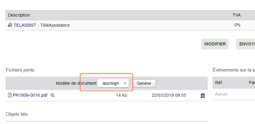 Dans ce cas, si vous essayez de regénérer le pdf avec le modèle « azursign », celui-ci se comporte comme le modèle « azur » (une icône « warning » s’affiche près du bouton « Générer » pour vous le signifier).