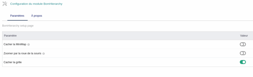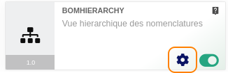 Dans la liste des modules de Dolibarr, aller à la fiche du module BomHierarchy et clicker sur la roue dentée.
