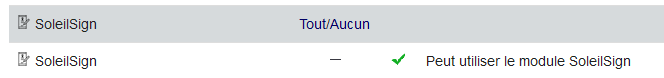 Le module SoleilSign ajoute une seule permission à Dolibarr.