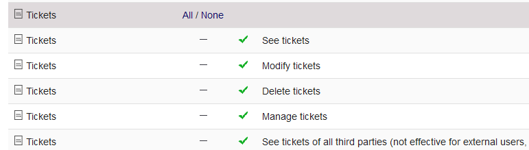 Natif Ticket module permissions