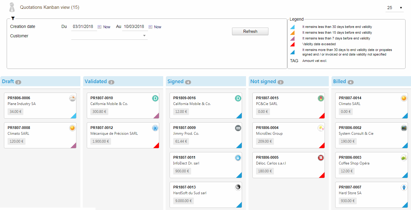 The possible tags for the Kanban cards of Propals/Quotations are:
