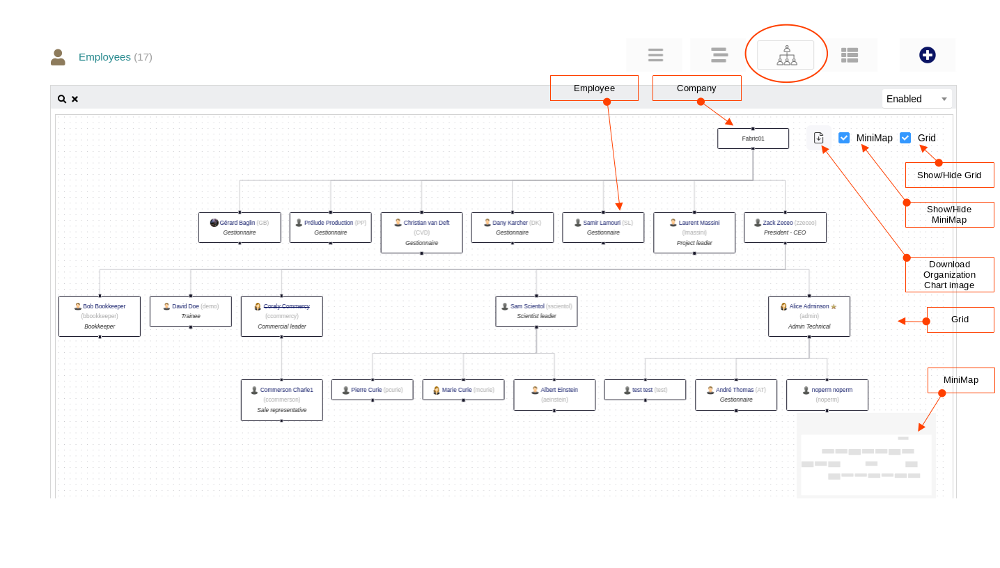 But, for chart consistency, disabled employees can be displayed even if you filter by “Enabled” and vice versa.