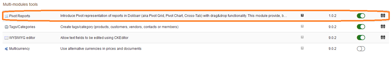 The installation of the Pivot Reports module is like any other Dolibarr module.