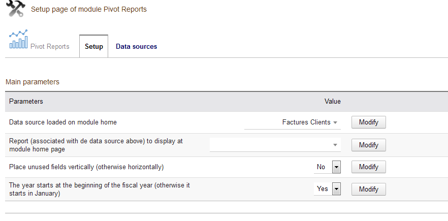 Allows you to select a data source to use when you click on the top menu of the Pivot Reports module