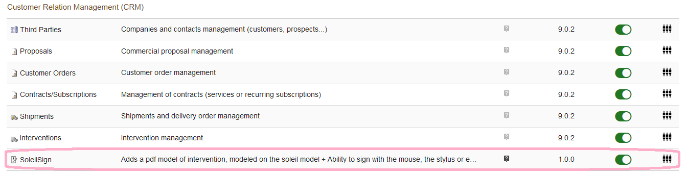 - Seek the SoleilSign module in the category “Customer Relationship Management (CRM)”